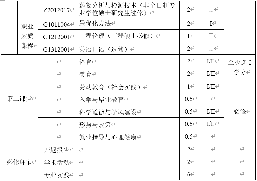 注:学生至少获得第二课堂5学分方可毕业。第二课堂学分认定见《伟德betvlctor1946源于英国研究生第二课堂学分管理办法》。其中,体育和美育类课程一共2学分,劳动教育(含社会实践)1学分,科学道德与学风建设0.5学分,形势与政策0.5学分,入学与毕业教育0.5学分,就业指导与心理健康教育0.5学分。