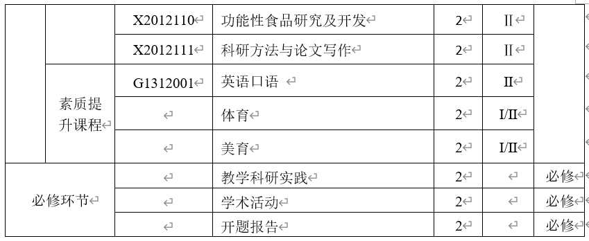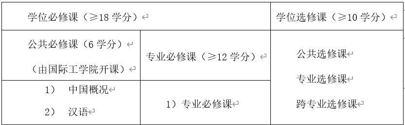 课程总学分要求不少于28学分(其中学位必修课不少于18分、学位选修课不少于10分),课程学分设置见表1。必修培养环节6学分(不计入规定学分),其中:学术活动2学分,开题报告2学分,教学科研实践2学分。学位论文36学分。最低总学分≥70学分。