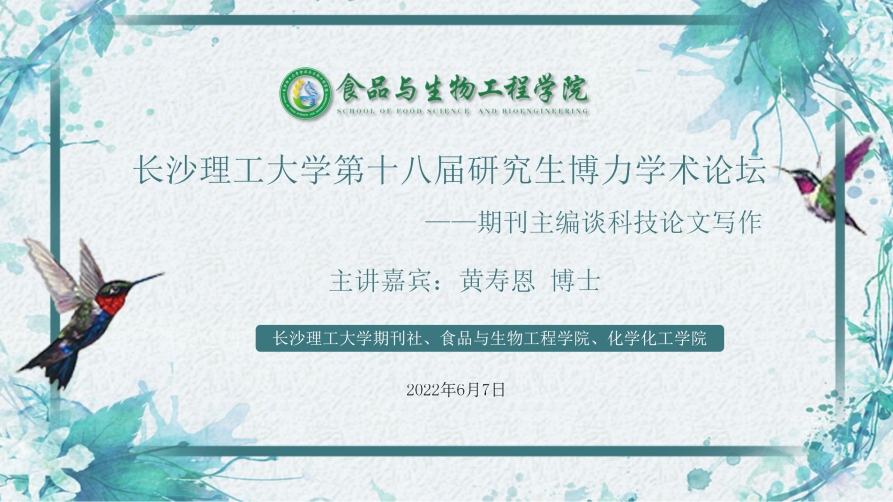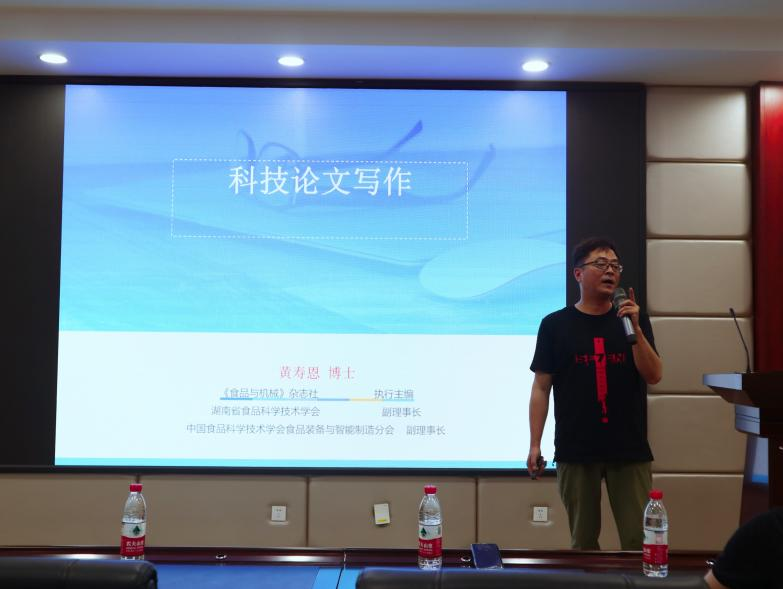 2020年6月7日晚,伟德betvlctor1946源于英国期刊社、食品学院和化学学院在工三A320共同举办了伟德betvlctor1946源于英国第十八届研究生博力学术论坛——“期刊主编谈科技论文写作”,此次论坛的主讲嘉宾系《食品与机械》杂志执行主编、中国食品科学技术学会食品装备与智能制造分会副理事长、湖南省食品科学技术学会副理事长黄寿恩博士,食品学院和化学学院100余名师生出席,食品学院副院长许宙主持本次讲座。