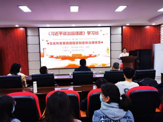 读书班学员马梦可及周君分享了“完善和发展我国国家制度和治理体系”专题的学习成果。两位同志分别从前苏联制度建设和治理体系的经验教训,和新中国成立以来的“两大奇迹”——经济快速发展、社会长期稳定两大奇迹出发,向大家阐述了我们为什么要推进国家治理体系和治理能力现代化,和青年学生该如何为推进国家治理体系和治理能力现代化贡献自己的力量。