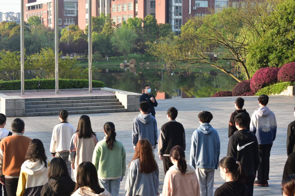 4月4日清晨,食品与生物工程学院于云塘校区图书馆前坪举行“青春献礼二十大,强国有我新征程”主题升旗仪式,食品学院党总支书记王建辉,院长程云辉,党总支副书记练黎旋,学工办兰贵辉、熊英、王凤以及生物类20级89名学生参加此次升旗仪式。
