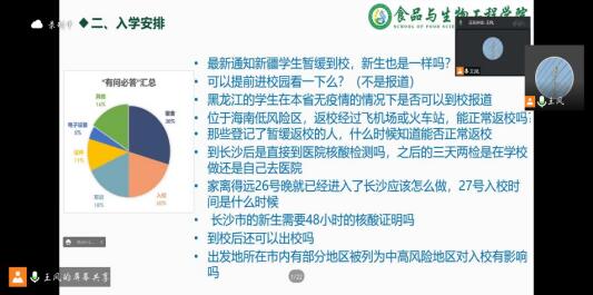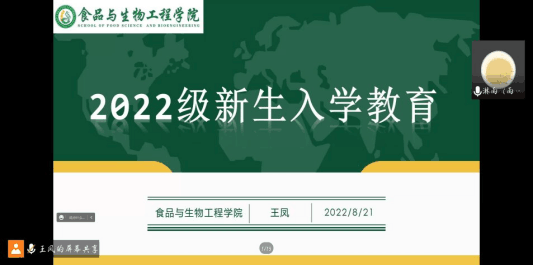 8月21日上午,伟德betvlctor1946源于英国食品与生物工程学院22级全体新生线上召开了第一次年级大会,辅导员王凤老师主持。