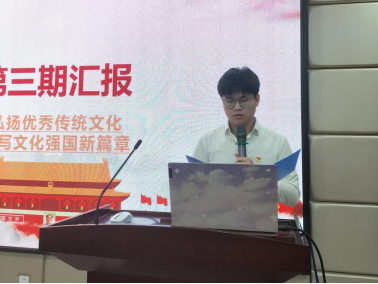 随后,在学习分享环节,学生党员赵汶宝以“如何弘扬优秀传统文化、建设文化强国”为主题进行了理论宣讲;生物支部鲁紫瑶和顾紫檬就青年如何传承与弘扬优秀传统文化,为谱写文化强国贡献力量一一发言。