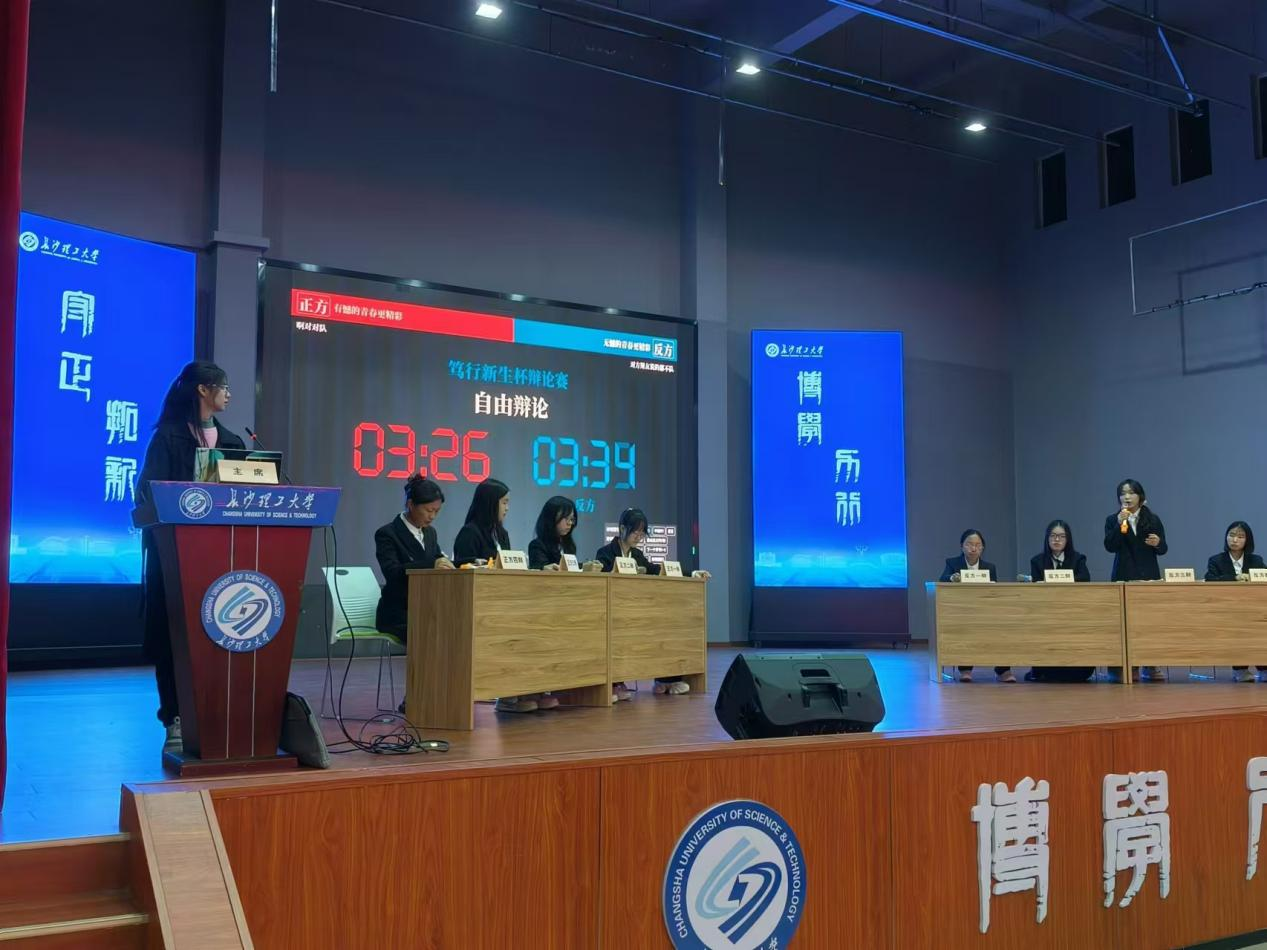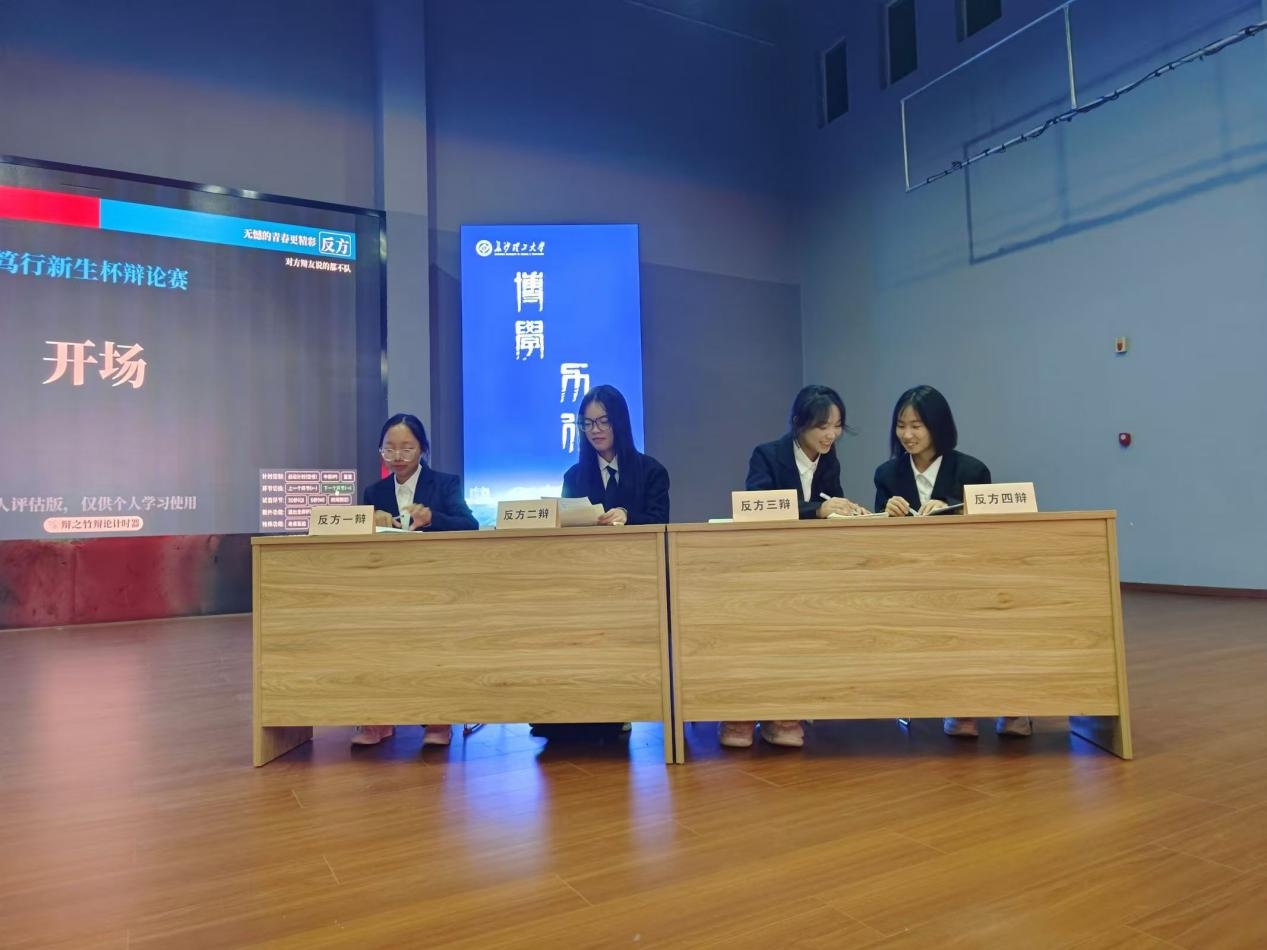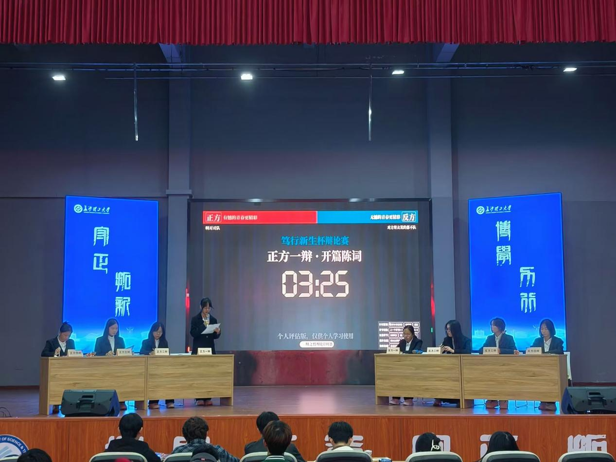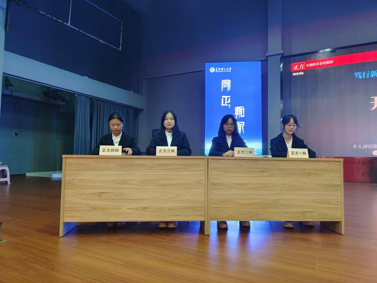 此次决赛辩题为“有憾的/无憾的青春更精彩”,正方是来自生物2401班的啊对对队,反方是来自食品2402班的对方辩友说的都不队。