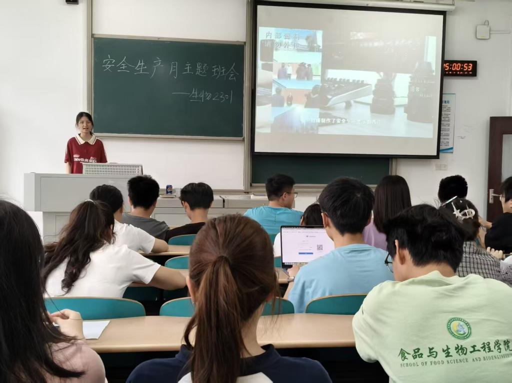为积极响应全国第24个“安全生产月”号召,切实增强全院学生的安全生产意识,提升应急处理能力,食品学院于6月16日至20日组织各班集中开展了“安全生产月”主题班会。