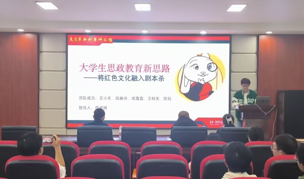 此次比赛共有七组参赛组。在本次比赛准备过程中,各小组通过查阅相关文献,进行市场调查、实景调查等背调,充分了解与本组项目相关的知识,找到突破口,实现项目的创新。答辩现场,各组利用简洁明了的PPT向大家阐述本组项目,评委老师对各组的项目进行点评,指出其优缺点。比赛进行十分顺利。本次比赛共设一等奖两名,二等奖两名,三等奖三名,其中《大学生思政教育新思路——将红色文化融入剧本杀》和《“菌素防腐”具有广谱抑菌作用的乳酸菌细菌素防腐剂》因其创新性、教育意义、商业表现等方面最为出色,荣获本次比赛一等奖!