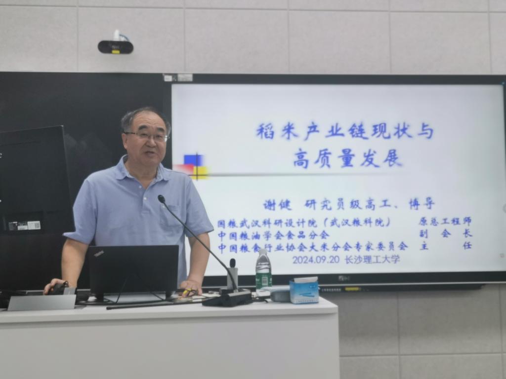 2024年9月20日,国粮武汉科研设计院原总工程师、中国粮油学会食品分会副会长谢健教授受邀到伟德作了题为“我国稻米产业链现状与高质量发展”的学术报告。本次报告会由学院教授委员会主任易翠平教授主持,五十余名师生参会。