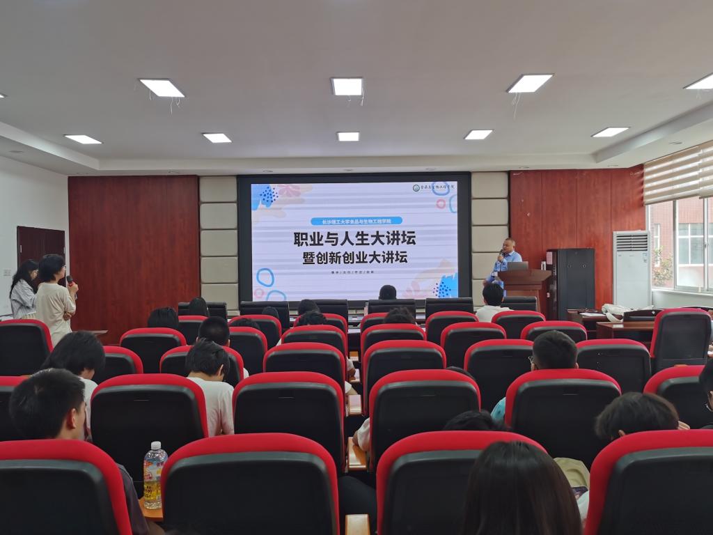 5月30日下午,伟德betvlctor1946源于英国食品学院职业与人生大讲坛暨创新创业大讲坛于工科三号楼A320顺利举行。湖南开天新农业科技有限公司董事长、91届校友胡再明师兄受邀回到母校,现场与学弟学妹们分享成长经历、交流人生感悟,吸引了100余名师生聆听。