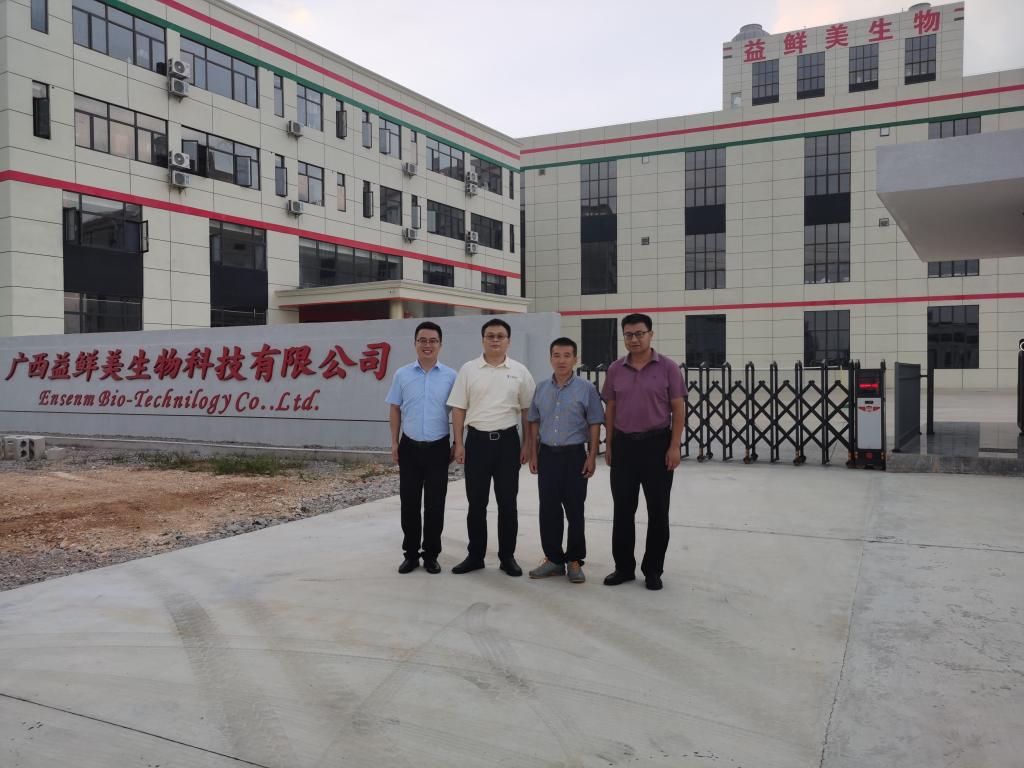 7月8日,伟德betvlctor1946源于英国食品与生物工程学院党委书记高顺利、院长王建辉一行3人前往广西贵港开展访企拓岗,先后走访调研广西益鲜美生物科技有限公司,与企业董事长、贵港市经开区领导共话“校地企”联动育人合作。