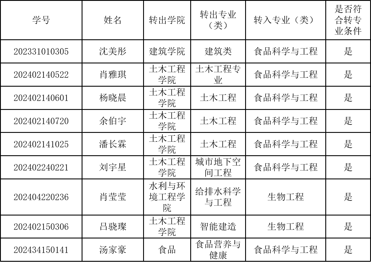 根据学校《伟德betvlctor1946源于英国本科生转专业管理办法》和《食品与生物工程学院2024级本科生转专业工作方案》的相关规定,经学生个人申请,学院转专业工作小组初审,现将本院2024级本科生转专业初审合格名单进行公示,公示期为2025年2月21日-2月23日。如有异议,可在公示期内以书面形式向食品学院教务办实名反映,电话:0731-85258727。