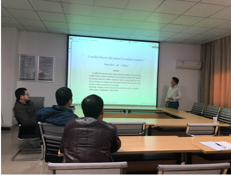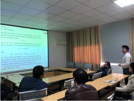 312日下午,数统学院信息与计算科学系在理科楼A502开展了学术讲座活动,旨在促进ESI学科和教学科研团队建设,这是信计系ESI学科建设系列活动的第一场学术交流。学术报告会由系主任姜英军教授主持,周伟军教授作了题为“A modified Broyden-like method for nonlinear equations”的讲座,介绍了求解非线性方程组的一种有效的新方法。该方法是在修正Newton算法的基础上进行改进,新方法具有全局收敛性和超线性收敛速度。