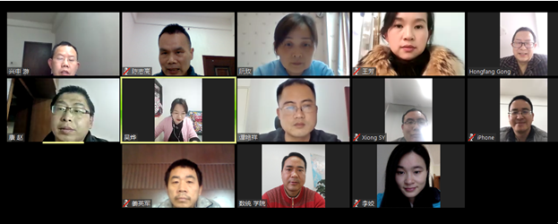 3月24日下午,数学与统计学院利用Zoom视频会议平台召开了“金课”课程教学团队建设会议,对进一步建设公共数学课程、专业基础课程、专业核心课程教学团队工作进行了研讨。学院各系(中心)正副主任参加了会议,院长黄创霞出席会议,教学副院长龚红仿主持会议。
