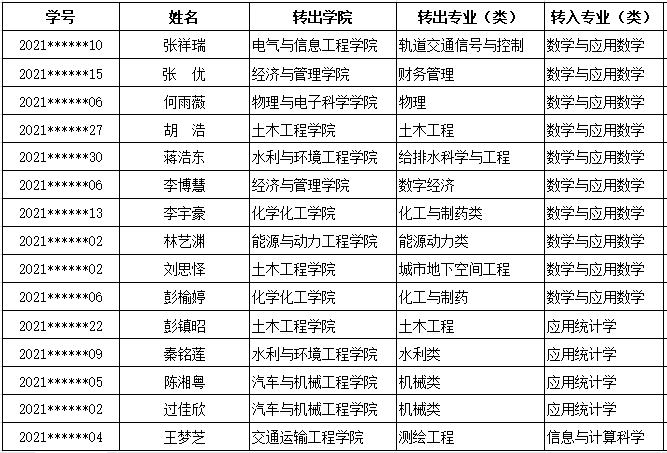 根据《伟德betvlctor1946源于英国本科生转专业管理办法》(长理工大教〔2018〕16号)和《关于做好2021级在校本科生转专业(类)工作的通知》(长理工大教〔2022〕16号)工作文件精神,经学生自愿申请,学院按照《数学与统计学院本科生转专业工作细则》要求对报名成功的学生进行资格审查,15名同学通过资格初审,名单公示如下: