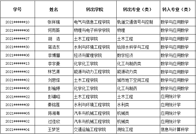 根据《伟德betvlctor1946源于英国本科生转专业管理办法》(长理工大教〔2018〕16号)、《关于做好2021级在校本科生转专业(类)工作的通知》(长理工大教〔2022〕16号)、《数学与统计学院本科生转专业工作细则》,经学生自愿申请,学院资格初审和综合考核,拟同意接收以下14名转专业学生,名单如下(排名不分先后):