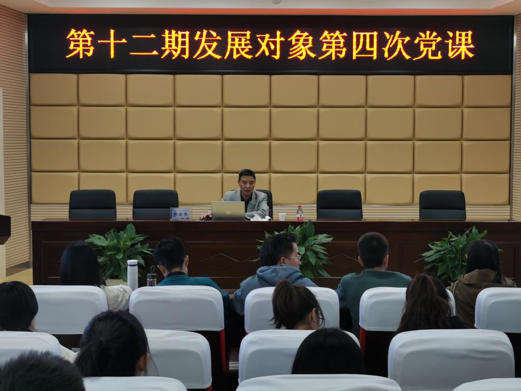 11月10日下午,数统、文学新闻系,法学系第十二期发展对象培训班第四次党课培训在理科楼A200举行。本次党课由数统学院党委书记张宏伟主讲,数统、文学新闻系,法学系全体发展对象参加学习。