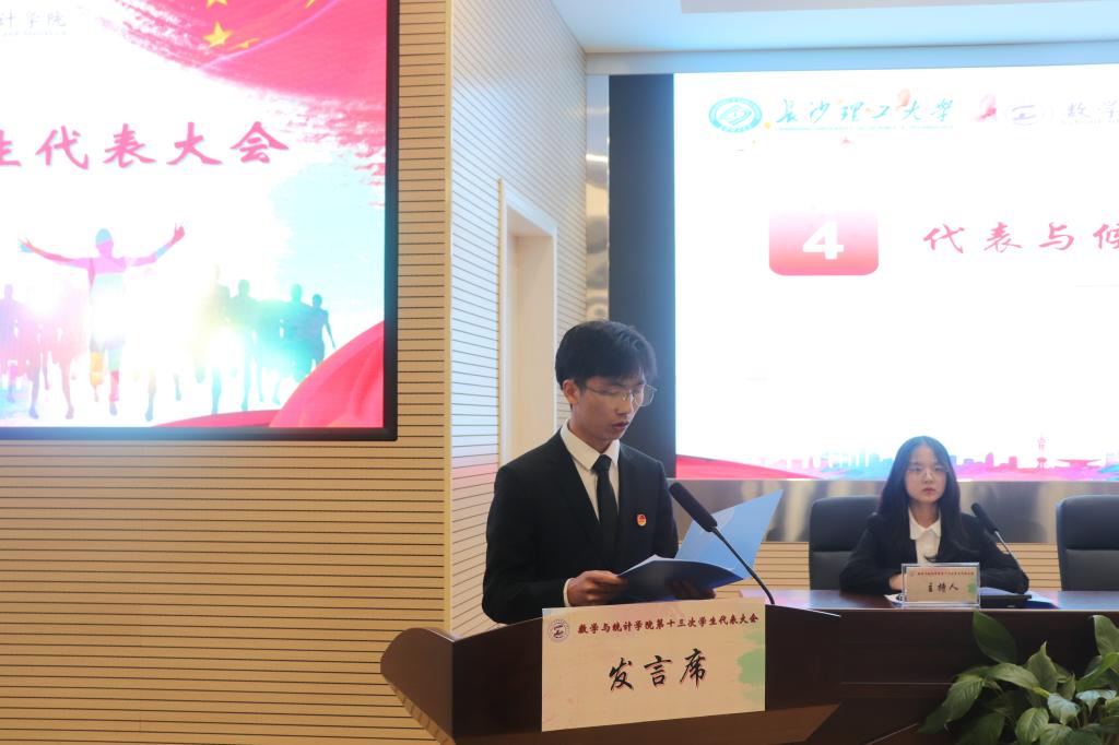 紧接着筹备委员会成员分别向大会做《筹备工作报告》、《代表和候选人资格审查报告》、《选举办法》和《学生会全年工作报告》。每一位候选人进行竞职演讲,各位候选人按顺序依次上台。在全体候选人演讲完毕后,全体学生代表秉着公平、公正、公开的原则,对竞选人员进行现场投票。团委书记柳映堂对本次大会进行了总结,并希望新一届的学生干部能够延续上一届的优良作风,带动整个数统学院的积极性,为数统学院再创辉煌。