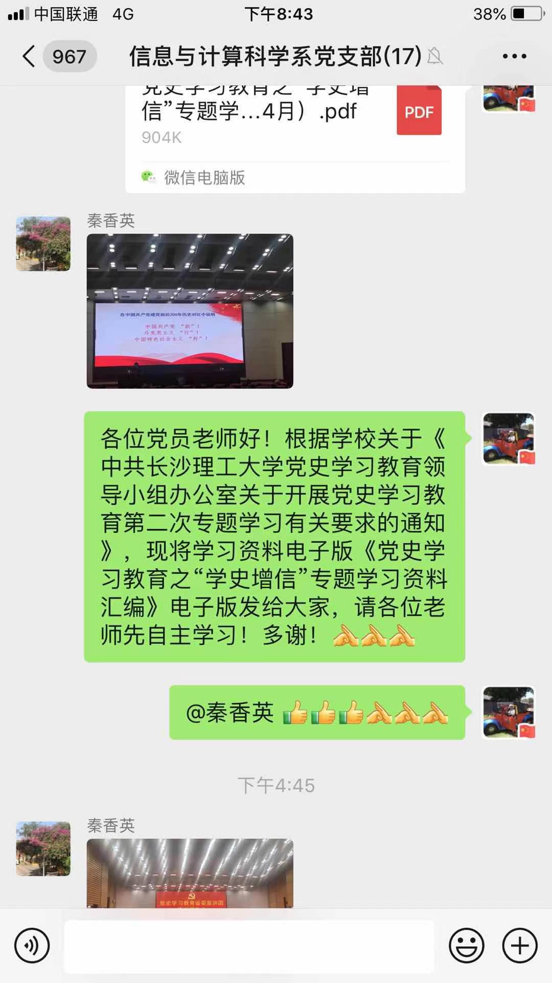 4月13日下午,根据《中共伟德betvlctor1946源于英国党史学习教育领导小组办公室关于开展党史学习教育第二次专题学习有关要求的通知》以及学院党委部署,信息与计算科学系党支部开展了“学史增信” 专题学习。活动由支部书记李姣同志主持。