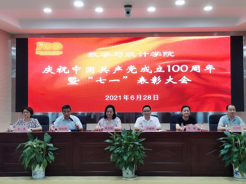 6月28日,数统学院在理科楼A200举行庆祝中国共产党成立100周年暨“七一”表彰大会。学校党委组织部副部长李芳瑾、特邀党建组织员黄凤英出席会议。会议由院党委委员、院长张宏伟主持,学院全体师生党员参加。