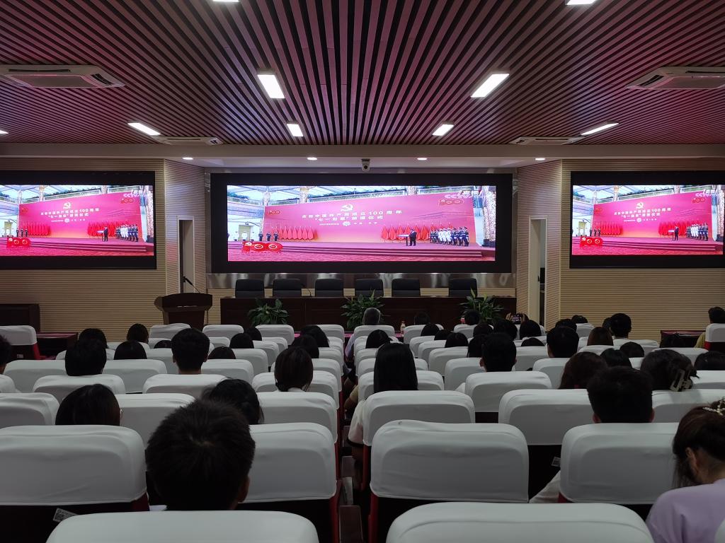 2021年6月29日上午,数统学院在理科楼A200组织全体学生党员观看“七一勋章”颁授仪式实况,数统学院党委书记邓崛峰、党委副书记马丽、副院长仝青山以及学院行政老师一同观看。