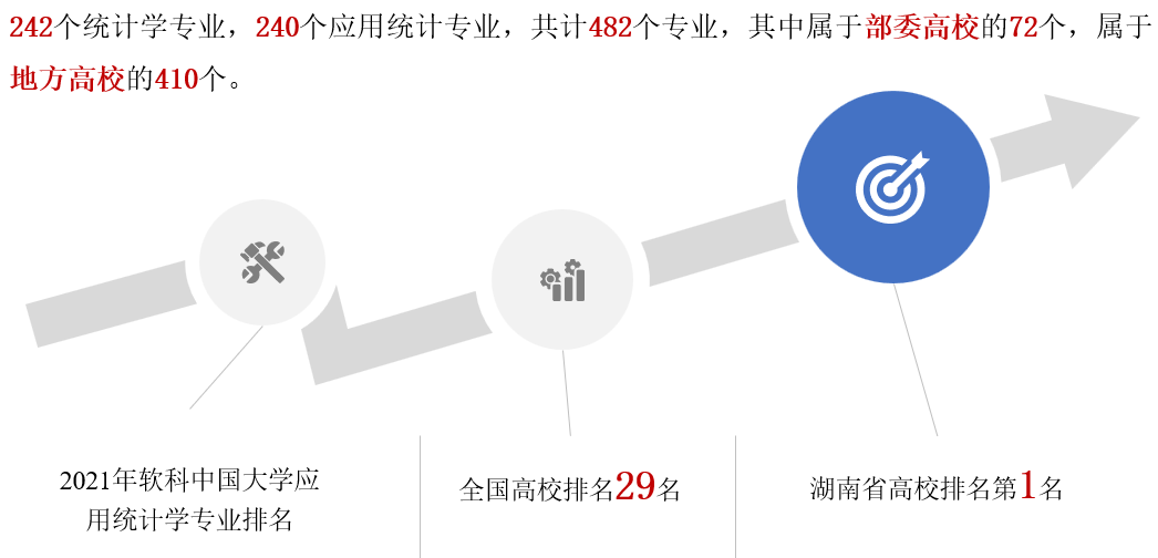 应用统计学专业在全国高校排名29名,湖南省高校排名第1名。专业师资力量雄厚,现有国务院“政府特殊津贴”1 人、湖南省“百人计划”2 人、湖南省“海外名师”1 人、省芙蓉学者 1 人、省高校学科带头人3 人、省杰青 2 人、省优青1人、省青年骨干教师6人。