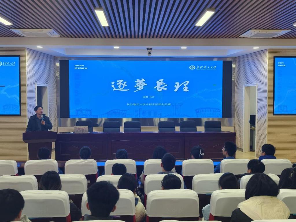 郑忠辉首先对长沙市明德天心中学师生的到来表示最热烈的欢迎。他从特色鲜明的王牌专业、实力强劲的师资力量、丰富优质的学习资源、个性多元的人才培养、交通便利的地理位置、高质量的就业发展、公寓式的住宿环境、丰富多彩的校园文化生活、“无限打卡”的校园美景及网红食堂等十个方面全面展示了伟德betvlctor1946源于英国的办学实力及招生政策等情况。同时,他还对数学与统计学院的发展历程、师资力量、科研实力、育人成效等方面作了介绍,使师生们对伟德betvlctor1946源于英国有了全面的认识,激励同学们报考伟德betvlctor1946源于英国的热情。他还带领师生们参观了学院“工程数学建模与分析”湖南省重点实验室,国家应用数学中心、研究生工作室、实验室机房等,为同学们介绍了数学的应用领域、数学的魅力以及常用的数学软件等,以此激发同学们学习数学的兴趣。