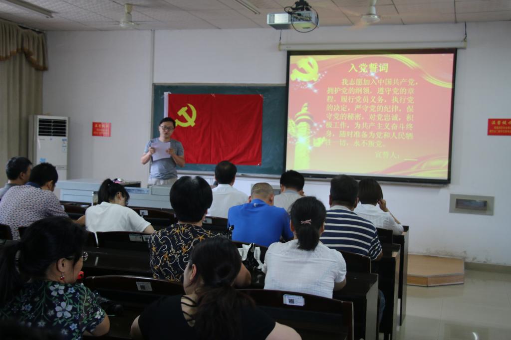6月26日艳阳高照,学院组织全体教职工党员,开展了一次别开生面的,为庆祝中国共产党成立九十七周年党日活动,以“坚定理想信念、建设美好数统”为主题,大会在“我宣誓”的主旋律音乐声中拉开序幕。