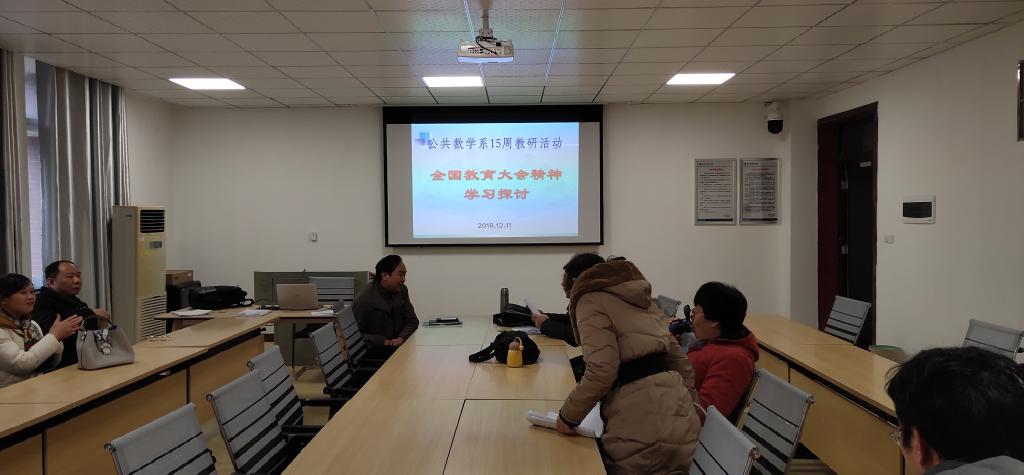 12月11日下午,数统学院公共数学系在理科楼A-311召开了“全国教育大会精神”学习讨论专题活动,会议由公共数学系全体教师参加,院长黄创霞参加指导了此次学习活动,并做了重要讲话。