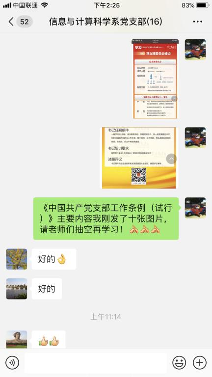 通过微党课和在线学习的方式,信息与计算科学系党支部组织本支部老师们认真学习了《中国共产党支部