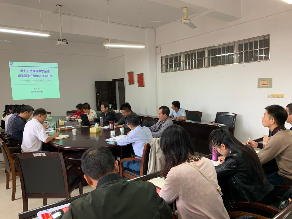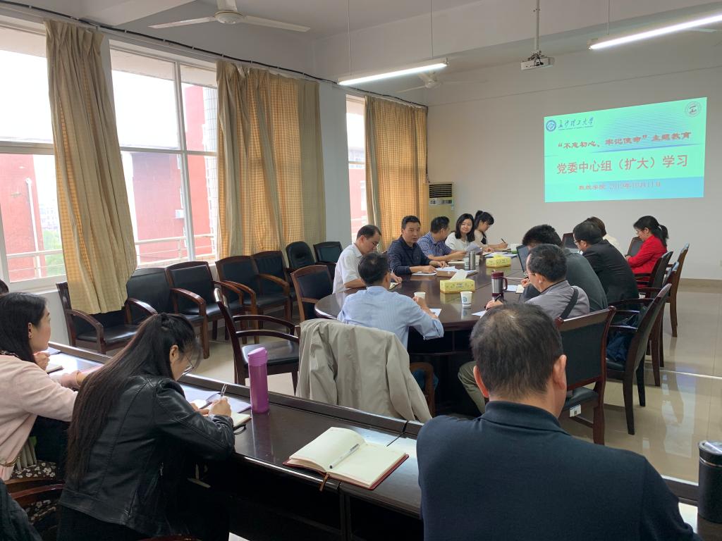 10月11日上午,学院“不忘初心、牢记使命”主题教育党委中心组(扩大)集体学习暨“不忘初心、牢记使命”主题教育第二轮集中理论学习会在4楼会议室召开,学院党委委员、领导班子成员、系主任、各党支部书记参加学习,由龚红仿副院长主讲:着力打造课堂教学金课--切实落实立德树人根本任务 一流本科专业建设之设想。学习会由院党委书记张宏伟主持。