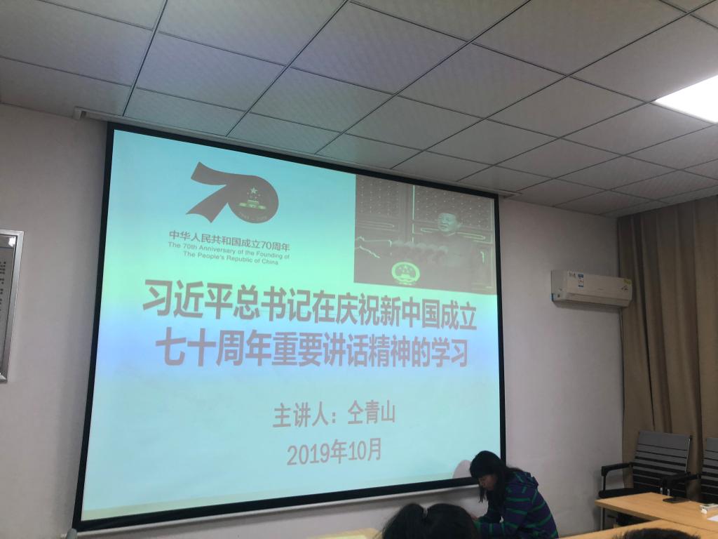 仝院长首先带领本支部全体党员同志观看习近平总书记在庆祝新中国成立七十周年重要讲话的原视频,并学习了习近平总书记讲话的原文。