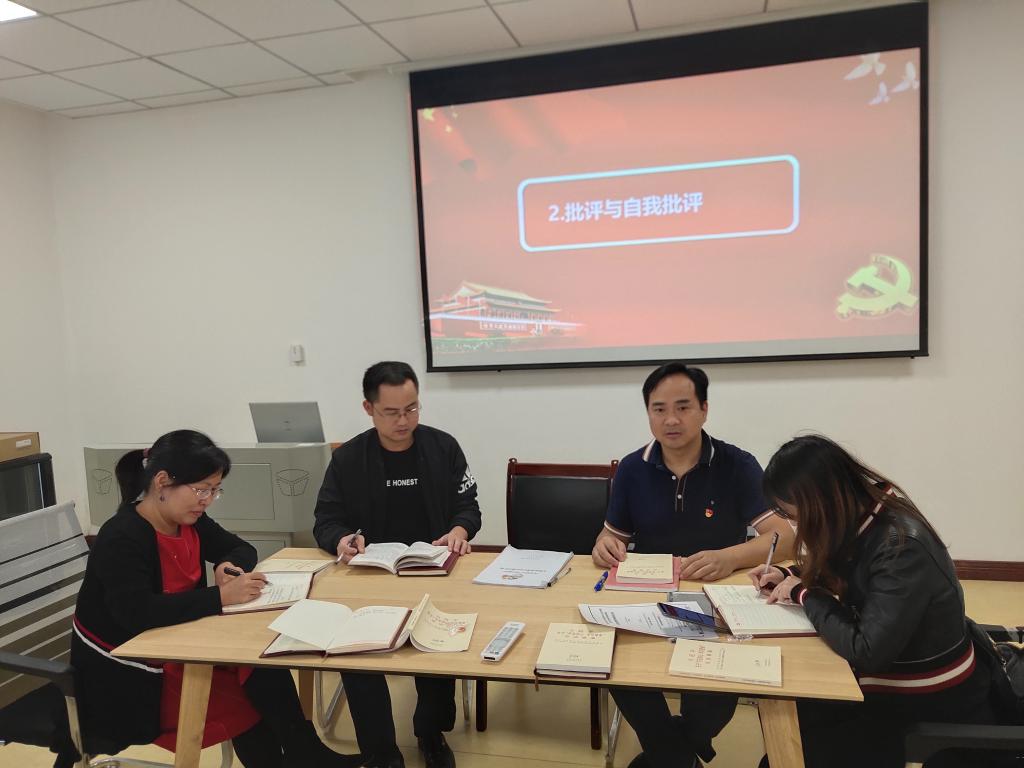会议由支部书记吴烨主持。首先全体党员集中学习《习近平”不忘初心、牢记使命“论述摘编》关于2019年6月24日习近平在十九届中央政治局第十五次集体学习时的讲话。接着,吴烨对2019年9-10月党支部的工作进行了总结,并对党支部在工作中存在的问题进行了深入分析;党员们开展批评和自我批评,成员之间坦诚提出批评和建议,做到了不回避、不走过场、不搞形式主义。结合思想和工作实际,分别指出理想信念、政治纪律、政治作风、担当作为、组织生活、落实整改等方面存在的问题,并提出了具体的整改措施。