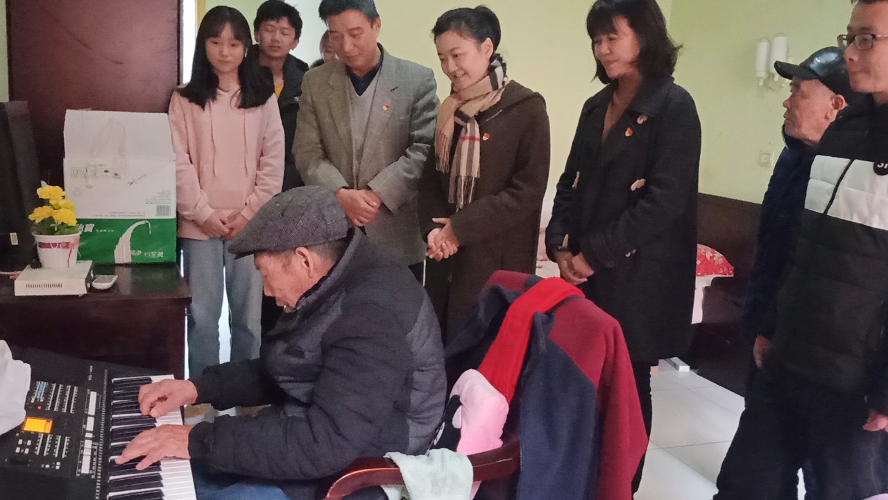 当天下午,学院党委书记张宏伟、副书记马丽、党务主任干事梁珊、团委书记柳映堂和学生志愿者们一同来到“雨花区老人之家”,张宏伟、马丽和工作人员交流,询问福利院的实际情况,了解福利院的历史,并在工作人员的带领下走进老人的住所看望老人,分发为老人准备的营养品和保暖物资。张宏伟仔细询问老人的身体状况和生活情况,并时刻提醒各位老人注意身体,预防寒流。老人看到学院老师们之后现场为大家弹奏《我和我的祖国》,为祖国成立70周年献礼。