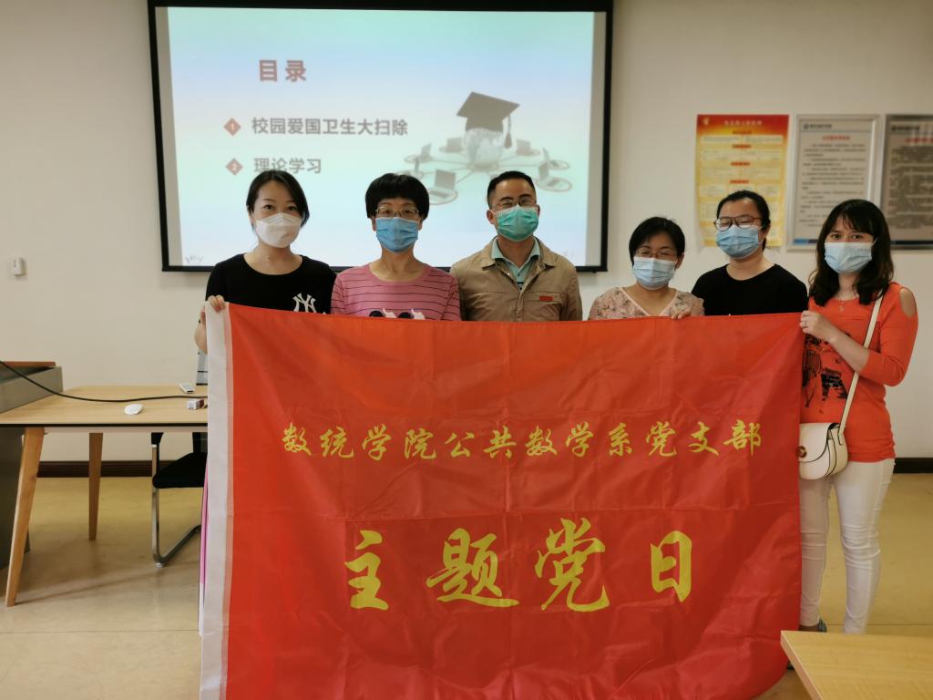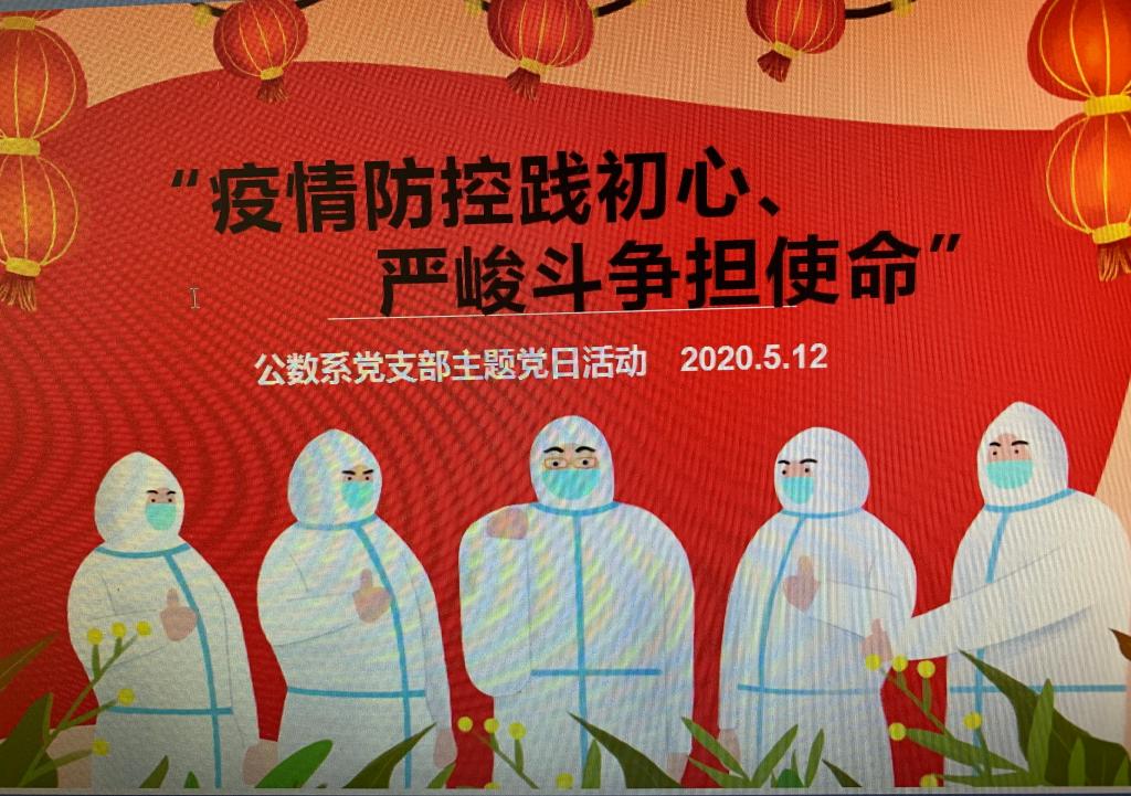 5月12 日下午,公数系支部全体党员,开展了主题为“疫情防控践初心、严峻斗争担使命”的党日活动。活动由支部书记吴烨主持,分为两个部分进行。首先,支部全体党员进行校园爱国卫生大扫除,对支部活动室、学院公共楼道等进行了卫生大扫除。接着,在支部活动室开展了理论学习,学习内容主要分为:支部前期网络教学突出事例总结;交流网络教学心得、经验、困境;学习研讨网络教学新技能;深入落实公数系列课程的课程思政等四部分。