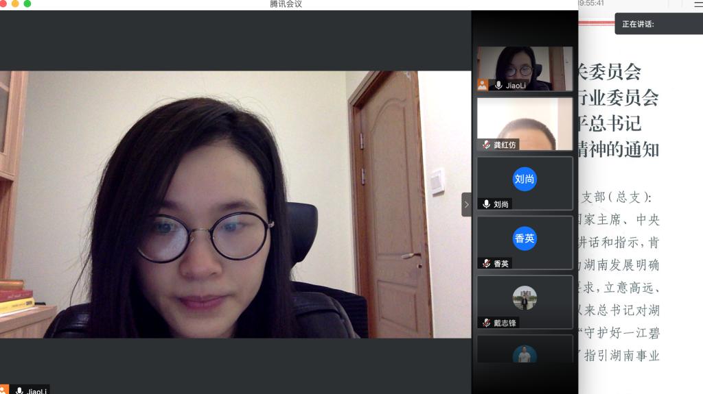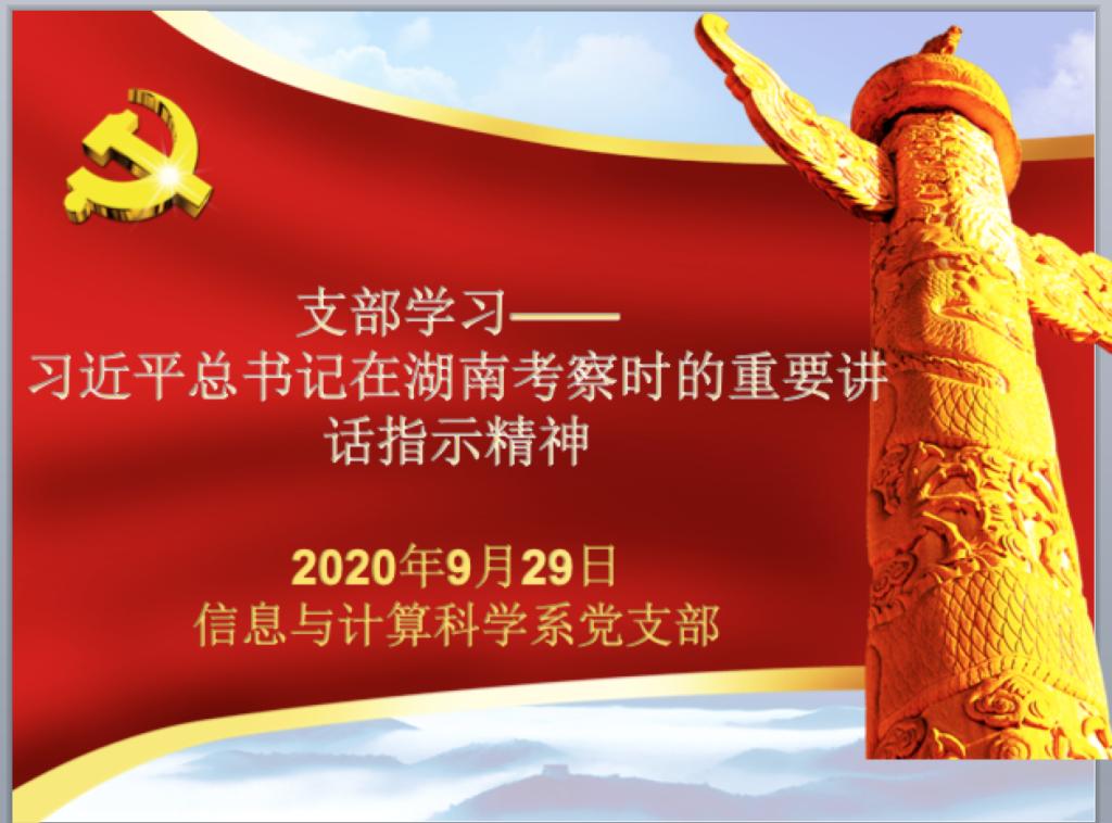 9月29日20:00,学院信息与计算科学系党支部通过腾讯会议召开党员大会,组织支部党员集中学习了习近平总书记在湖南考察时的系列重要讲话指示精神,会议由支部书记李姣同志主持.