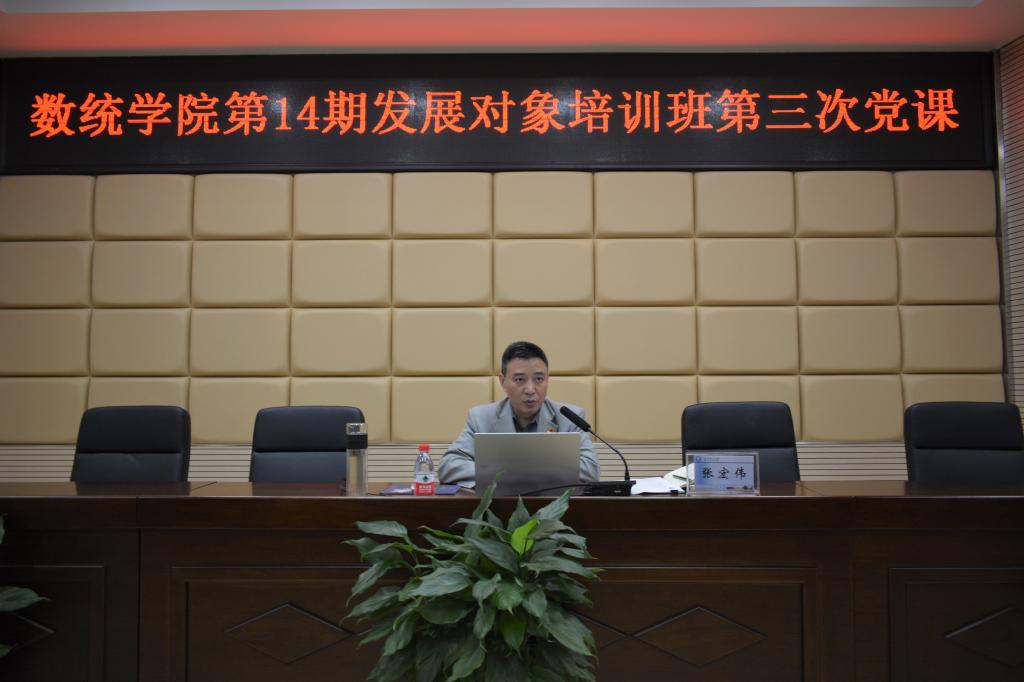 4月27日下午,数学与统计学院在理科楼A200开展第14期发展对象培训课。此次党课由数统学院党委书记张宏伟教授主讲,第14期全体发展对象参与。