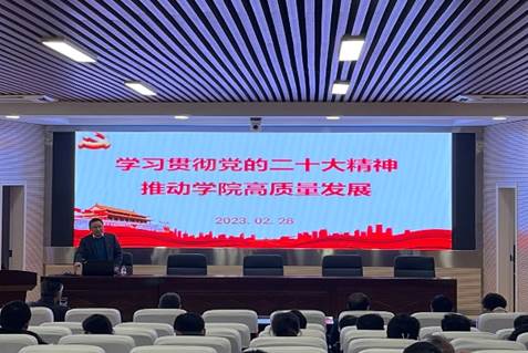 2月28日下午,学院党委在理科楼A200组织师生开展政治理论专题学习,学院党委书记邓崛峰以“学习贯彻党的二十大精神,推动学院高质量发展”为题作辅导报告。学院全体教职工和部分学生党员135人听取报告。