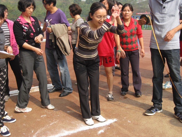 本届教项目设置有男女60M、100M、800M、1500M、跳高、跳远、立定跳远、铅球、4×100M 接力。我院科研办主任谭贵珍师在右手曾受过伤的情况下,发扬顽强拼搏精神,在教工女子丙组铅球预决赛中勇夺第三名;科研办李秋桂老师,曾是一名军官,转业进学校后,有着每天坚持锻炼身体的良好习惯,在这次教工男子丙组800米预决赛中荣获第三名优异成绩;学工办年轻帅气的孔德财老师在教工男子甲组1500米预决赛取得了第五名的好成绩。另外院长助理周富照教授参加了教工男子丙组立定跳远预决赛,公共数学课部师丽雅老师参加了教工女子丙组立定跳远预决赛,在高手如云的情况下,他们本着“重在参与、永不言弃”的良好体育精神,发挥了自己最佳状态。