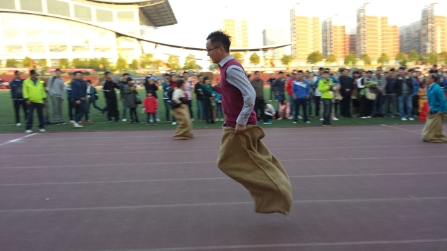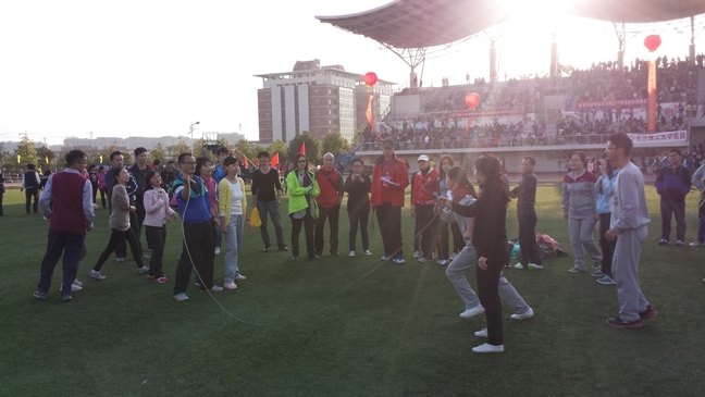 本届校运会还为了提高教职工的参与面,组委会精心设计了“十人长绳”、“袋鼠跳”、“二人三足”的趣味项目。当天下午,我院教职工组队均参加了三个趣味项目。