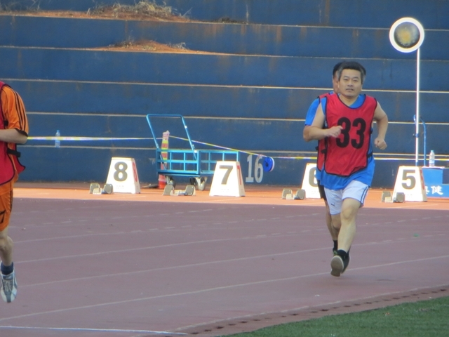 本届校运会教职工项目设置有男女60M、100M、800M、1500M、跳高、跳远、立定跳远、铅球、4×100M 接力。我院科研办李秋桂老师曾是一名军官,转业进学校后,有着每天坚持锻炼身体的良好习惯,在这次教工男子丙组800米预决赛中荣获第三名优异成绩;学工办年轻活力的郑国义老师在教工男子甲组1500米预决赛取得了第四名的好成绩;青年教师罗煦琼老师发扬敢于拼搏的精神,在男子甲组跳高预决赛中勇夺第四名……。在高手如云的情况下,他们本着“重在参与、永不言弃”的良好体育精神,发挥了自己最佳状态。