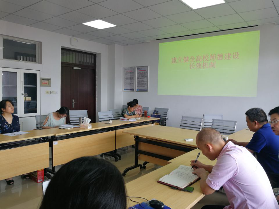 会上,游主任带领大家共同学习了教育部规定的有关师德师风建设的“十条红线””与伟德betvlctor1946源于英国课堂教学行为“十要”、”十杜绝”等相关文件,要求大家恪守高校教师职业道德规范,杜绝言行失范,自觉遵守教学纪律,紧跟学科前沿,开展课堂革命,打造“金课“,淘汰“水课”。