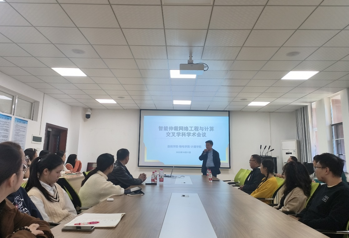 10月11日下午,我院在云塘校区理科楼A212成功举办“智能仲裁网络工程与计算”交叉学科第三次学术交流会议。数统学院、物电学院和计通学院三个学院的教师和研究生共60余人参加了此次交流会,会议由物电学院唐立军教授主持