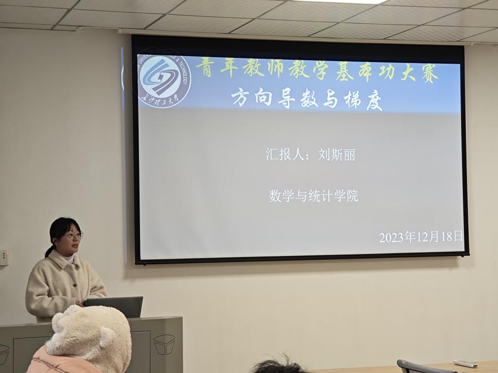 12月18日下午,数学与统计学院在理科楼A311举办了青年教师教学基本功大赛学院选拔赛,19位青年教师参加了本次竞赛。活动由李姣老师主持,学院张宏伟院长、王芳老师担任评委。