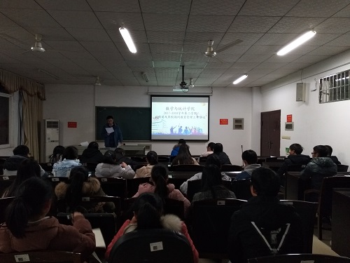 1月10日,数学与统计学院在云塘校区理科楼A419举办了2017-2018学年第二学期放假前及寒假期间教育管理大会,该会议由数统学院17级辅导员郑国义老师主持。15级、16级和17级各班班长及学习委员、生活委员参加此次会议。