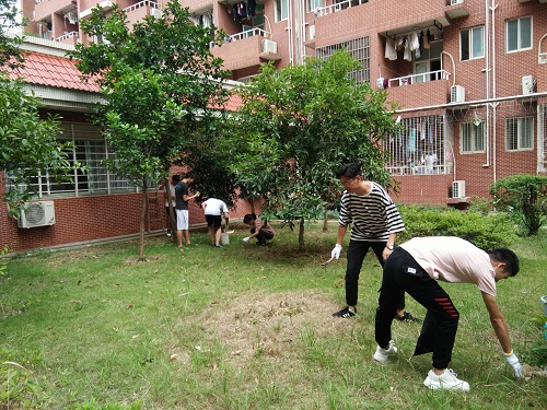 此次大扫除分为两组,由柳映堂老师带领第十届学生会成员打扫理科楼周围的草坪,学生会张虓和孟青带领大一30名同学打扫至诚轩二栋周围的草坪。打扫过程中大家分工明确,密切合作,同学们默契配合并积极交流,也给活动增添了一份乐趣。在大家高效率的工作下,此次大扫除仅历时半个小时,卫生就清扫完毕。