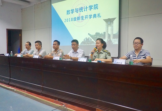 9月17日晚上19:00,数学与统计学院在金盆岭校区12教A200举行了2018级新生开学典礼。院党委书记张宏伟,院长黄创霞,副院长仝青山、龚红仿、王佳伏,统计系朱恩文,信计系姜英军,数学系游兴中,公共数学系谭艳祥等老师出席。会议由院党委副书记马丽主持。