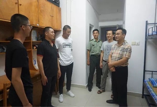 学院领导在辅导员柳映堂、学工办老师崔培东的引导下,深入大一本科生寝室,逐一与寝室的新生进行交流。交流中,领导们首先向新生指出做好内务的重要性,并对新生的内务工作提出了表扬。接着,他们还亲切的询问了每名新生对新的学习生活环境的感受,并对大家的疑惑及问题做出详细解答。最后,领导强调注意寝室用电,出门前务必关掉所有电器,以防出现意外情况。另外,要求新生每天早点休息,只有拥有充足的睡眠才能面对第二天辛苦的训练。