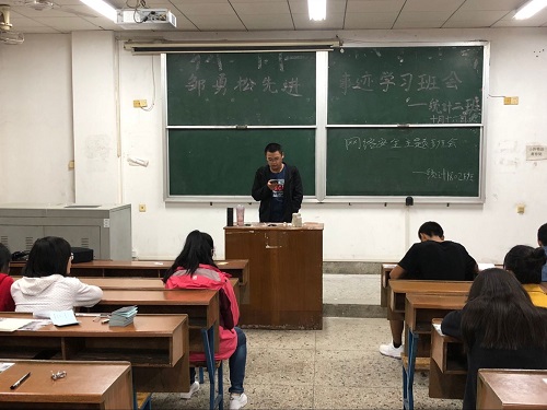10月16日,数学与统计学院18级各班在金盆岭教学楼组织开展了学习“邹勇松同学先进事迹”主题班会,由各班班长主持,班级全体同学参加班会。