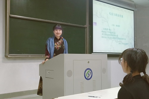 11月21日晚,数学与统计学院于金盆岭校区6教108成功举办职业与人生大讲堂第二讲——礼仪与职业形象。此次特邀湖南省公民礼仪素质研究基地首席专家,湖南女子学院党委委员、副校长蒋璟萍教授主讲。由学院党委副书记马丽主持,18级辅导员柳映堂、全体18级新生参加了此次讲座。
