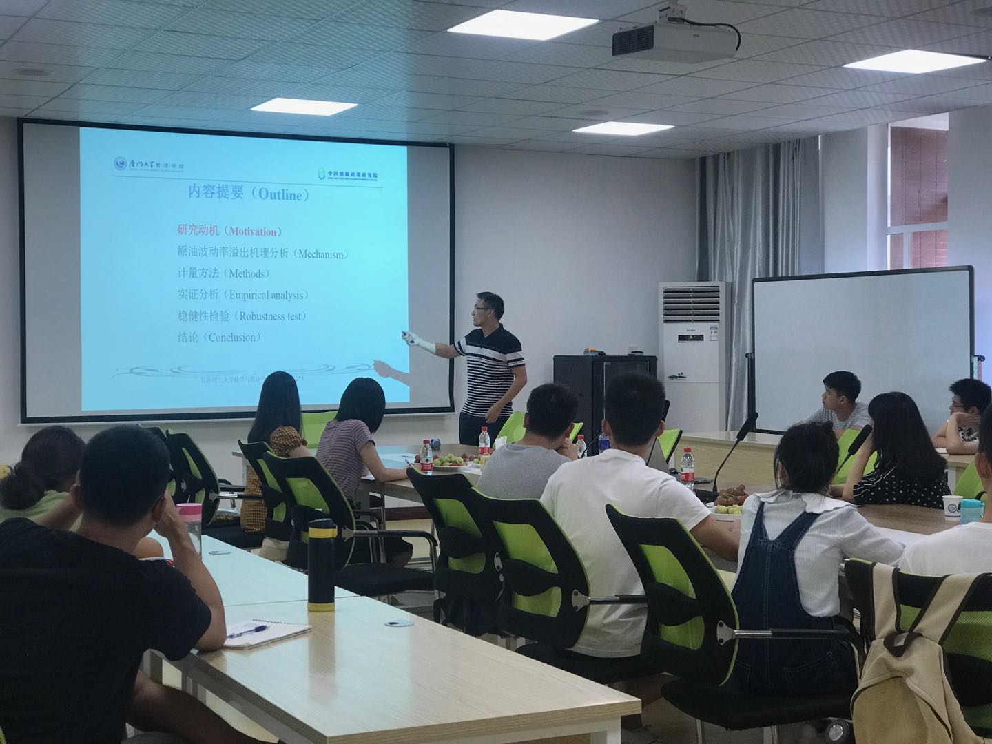 9月27号下午3:00,龚旭副教授在理科楼A212作了题为“国际原油期货与中国原油现货间的波动率动态溢出分析”的学术报告。此次报告由杨鑫老师主持,各年级研究生积极参加了此次报告会。