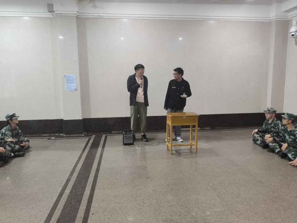 2020年9月29日下午16:00,数统学院于金盆岭校区办公大楼大厅举办了20级新生军训慰问演出,新生辅导员庄奕、团委书记柳映堂参加,19级和18级同学参演,团委学生会文娱部和文工团组织策划。